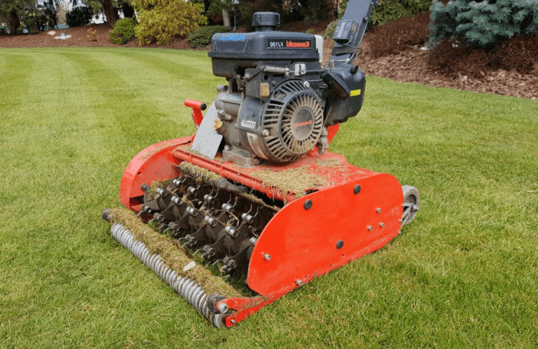 Jedná se o proces, při kterém dochází k vertikálnímu prořezávání trávníku. Zkracují se horizontální odnože a trávník se zbavuje plsti.